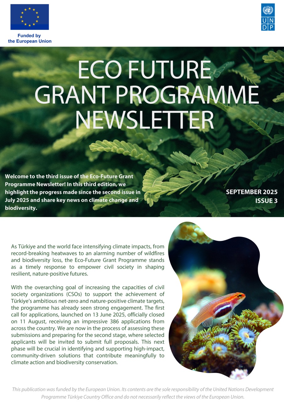 The Eco Future Grant Programme is an ambitious initiative designed to empower civil society organizations (CSOs) in Türkiye to lead transformative efforts in climate action and biodiversity protection. Through a combination of technical assistance and grant programme, this project aims to inspire innovate approaches, foster partnerships, and implement sustainable environmental practices. By equipping CSOs with the necessary tools, knowledge and resources, the programme intends to enhance their operational capacity while encouraging them to engage communities in environmental sustainability, biodiversity conservation, and climate-positive initiatives.